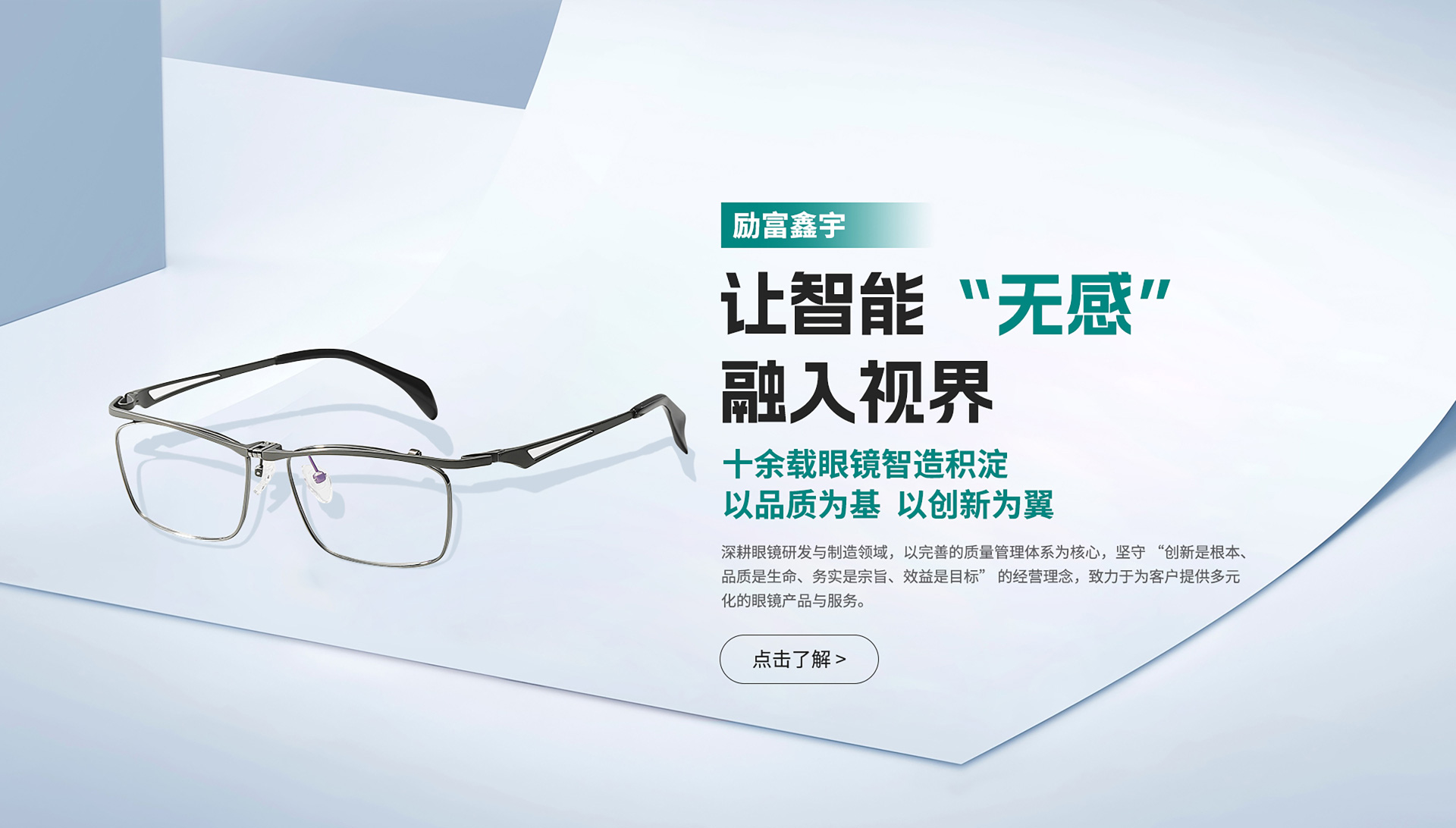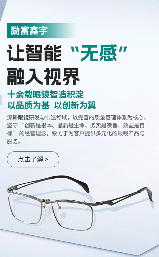 公司始终秉持 “创新是根本、品质是生命、务实是宗旨、效益是目标” 的经营理念,深耕行业多年。依托成熟的项目研发部门和拥有十余载丰富经验的技术团队,建立了完善的质量管理体系与严格的品质流程,并搭配专业监测设备,从研发到出厂全流程把控,为每一副眼镜的品质筑牢基础。