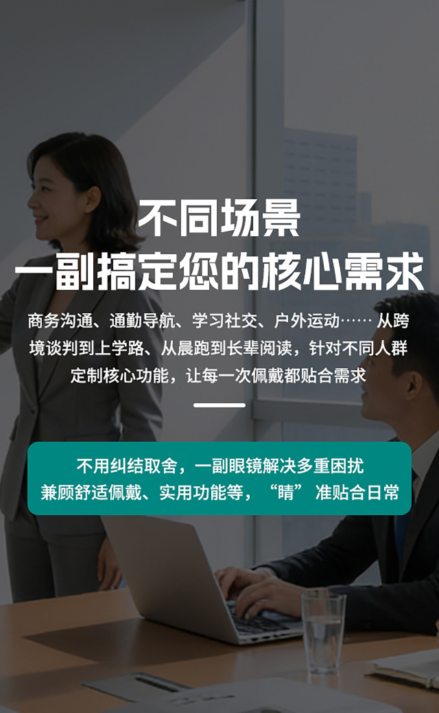 无需同时携带常规眼镜与智能设备,一副眼镜兼顾视物与智能需求,出行更轻便。